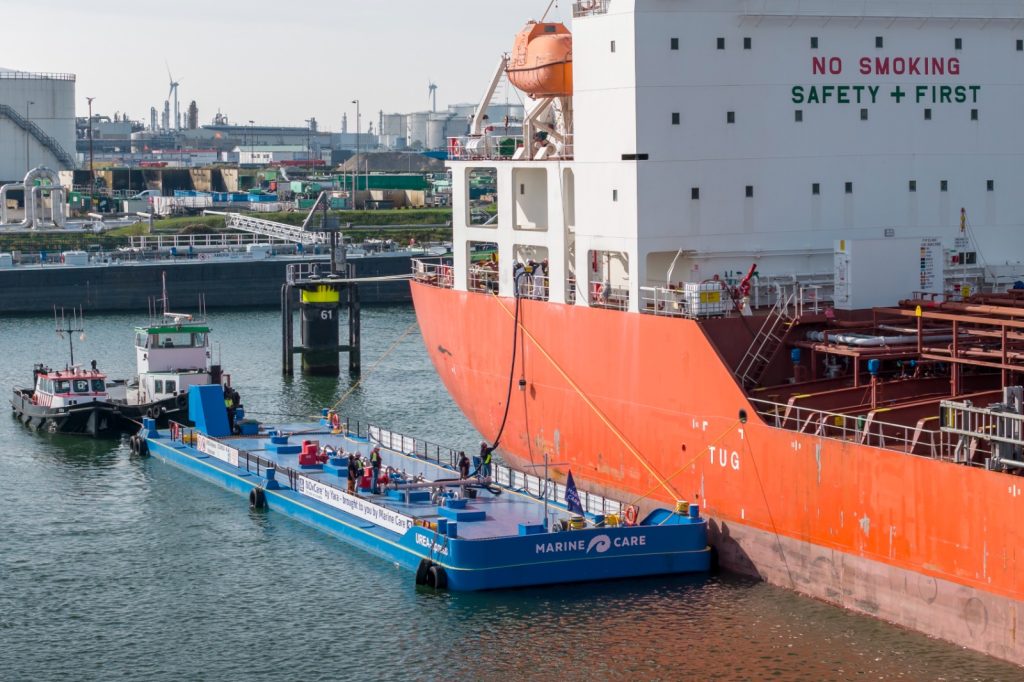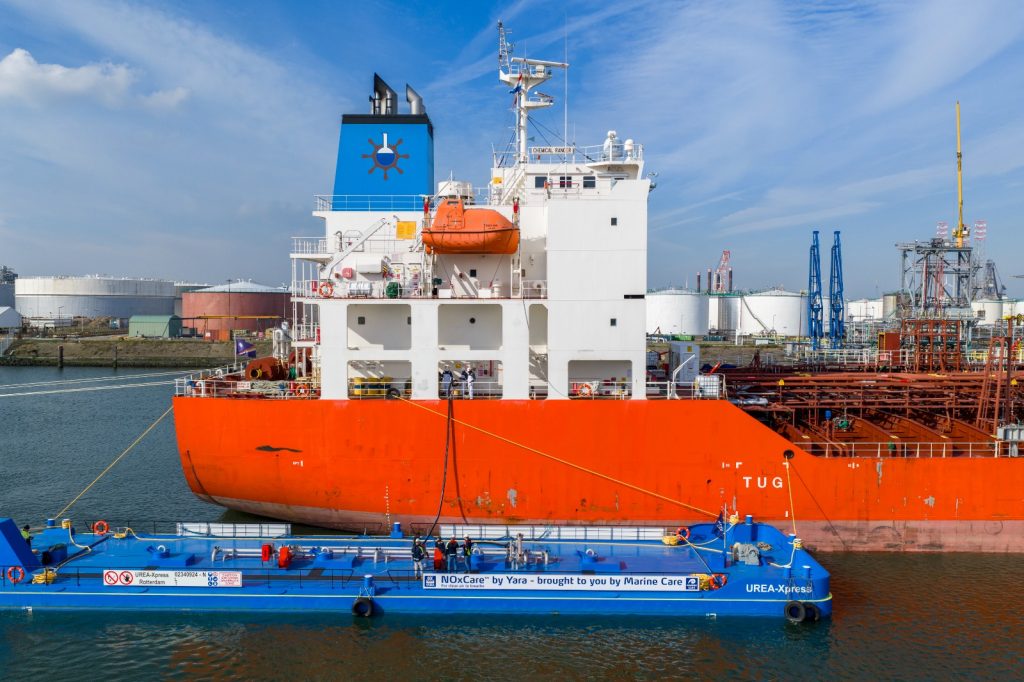Marine Care, in an exclusive partnership with Yara, is proud to introduce UREA-Xpress, a custom-built 600 m³ barge specially designed for safe, efficient, and sustainable delivery of NOxCare™ to the marine industry. Loading directly from Yara’s Sluiskil terminal, UREA-Xpress will have its home base in the port of Rotterdam. It eliminates the need for additional transport, storage and handling, as well as reducing the use of plastic and CO2 emissions. Saving 80% of time and increasing operational and crew safety, supply by barge becomes a game changer and the obvious choice for sustainable operations.